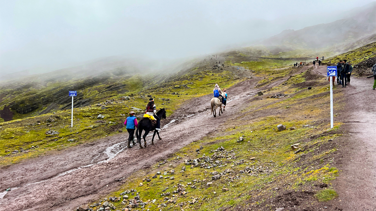 Option 2: Horses (approximately 100 soles), you will continue (approximately 30 minutes), along the path that will ascend until you reach the foot of the Rainbow Mountain, the horse will stay at a strategic point where you will continue with a walk of around 5 minutes to reach the Rainbow Mountain.